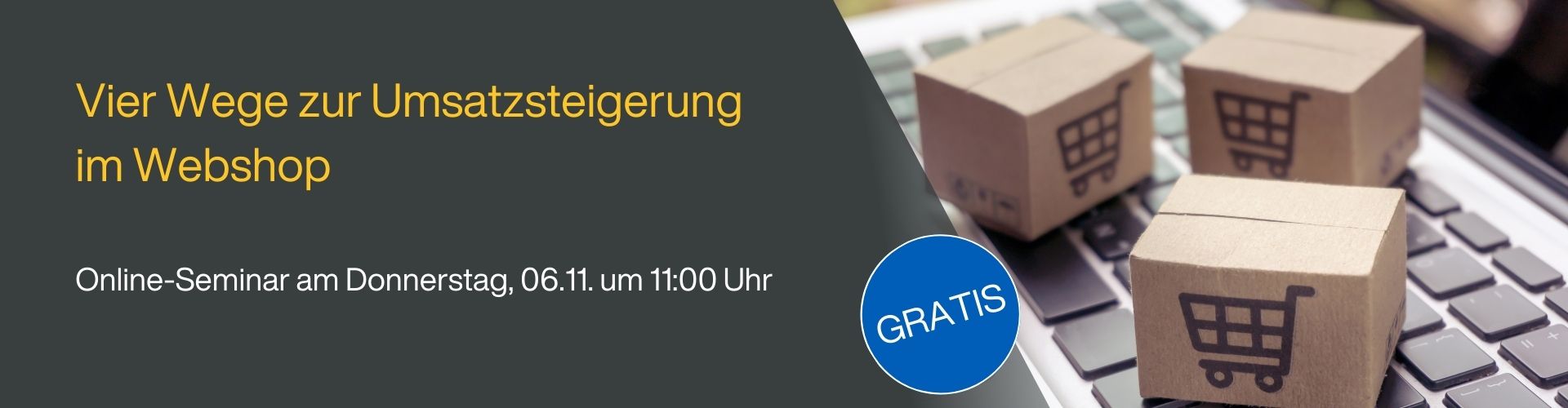 In unserem kostenlosen Online-Seminar erfahren Sie, welche Faktoren entscheidend sind, um Ihren Umsatz zu steigern und wie Sie die richtigen Schritte zur Optimierung Ihres Shops gehen.